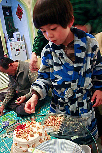 某人見蛋糕雙眼發光﹐一個飛身撲過嚟話要幫手放D粒粒上個蛋糕度﹐懶係熟手。實情係一邊放一邊食。放一粒食三粒﹐咁細個就穿櫃桶﹖