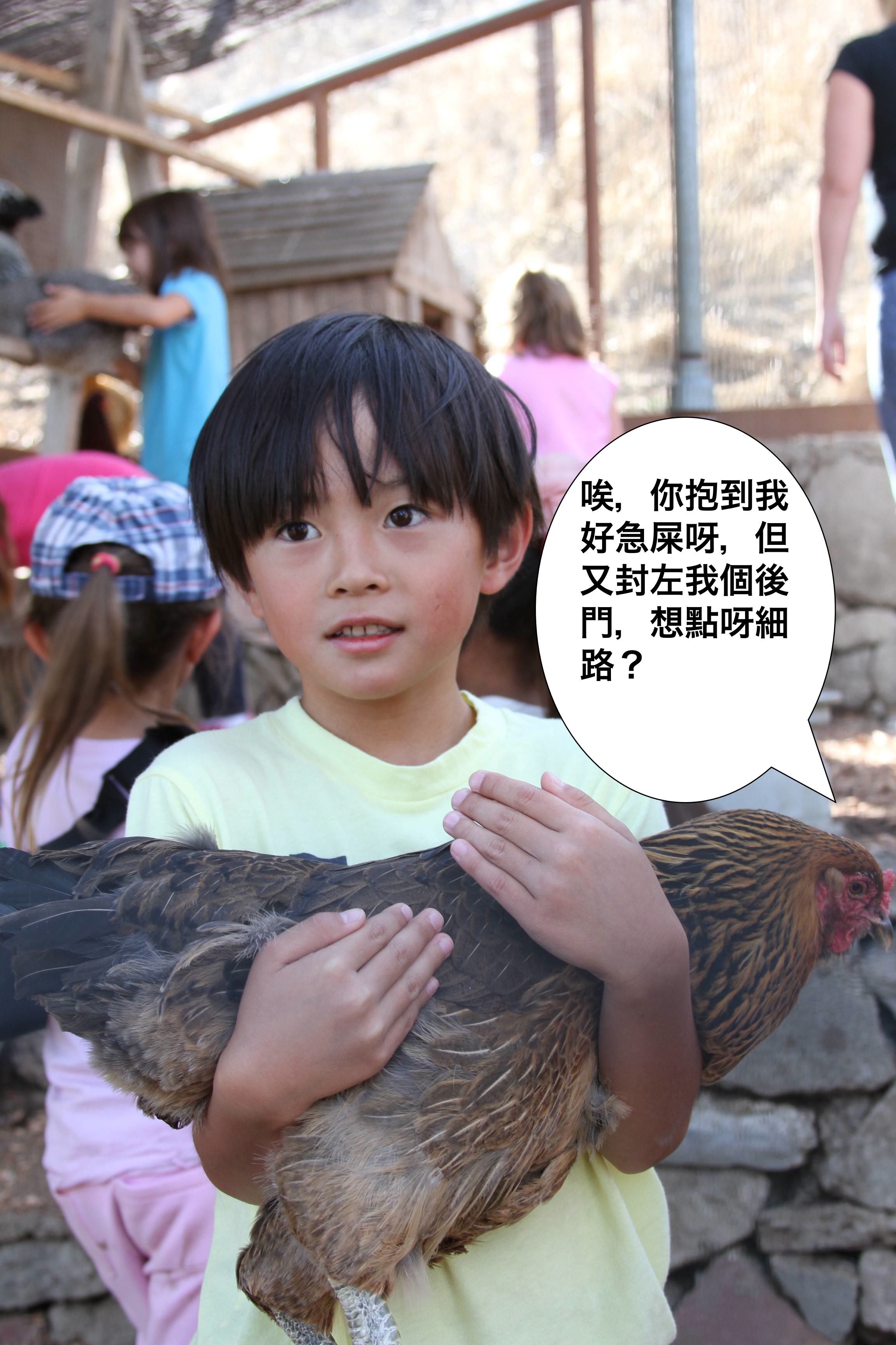 IMG_1880說時遲那時快,哥哥講完就大開雞籠度門放班友友去大肆搜略,真係人追雞雞甩毛,小朋友好想抱下雞雞同佢哋做朋友,場面幾咁……溫馨!Baffle